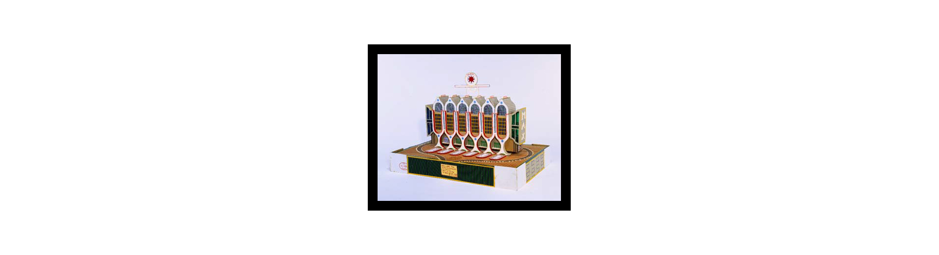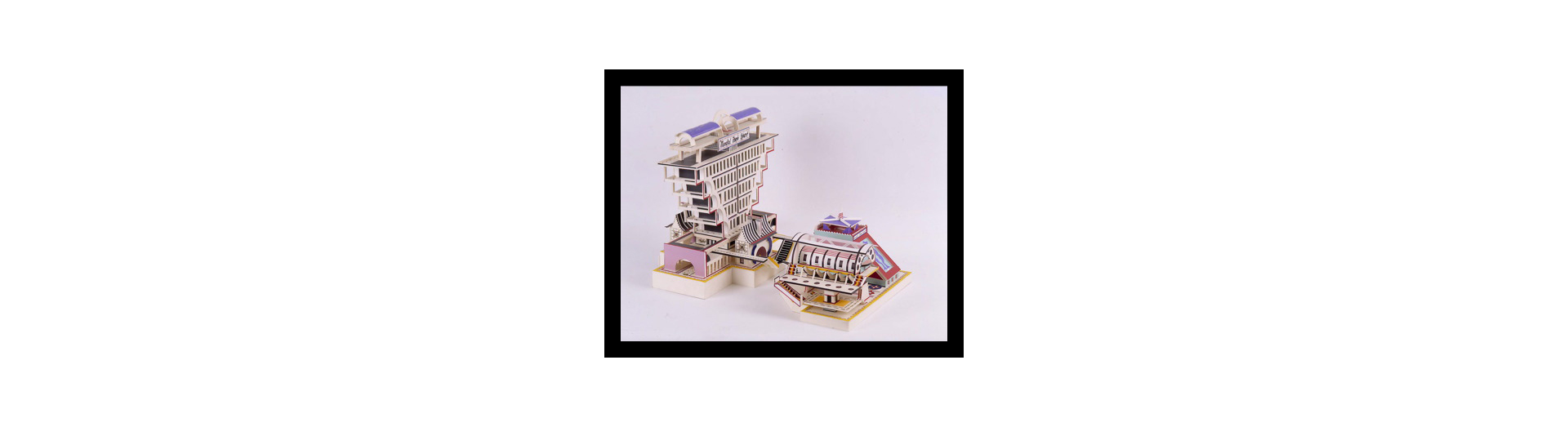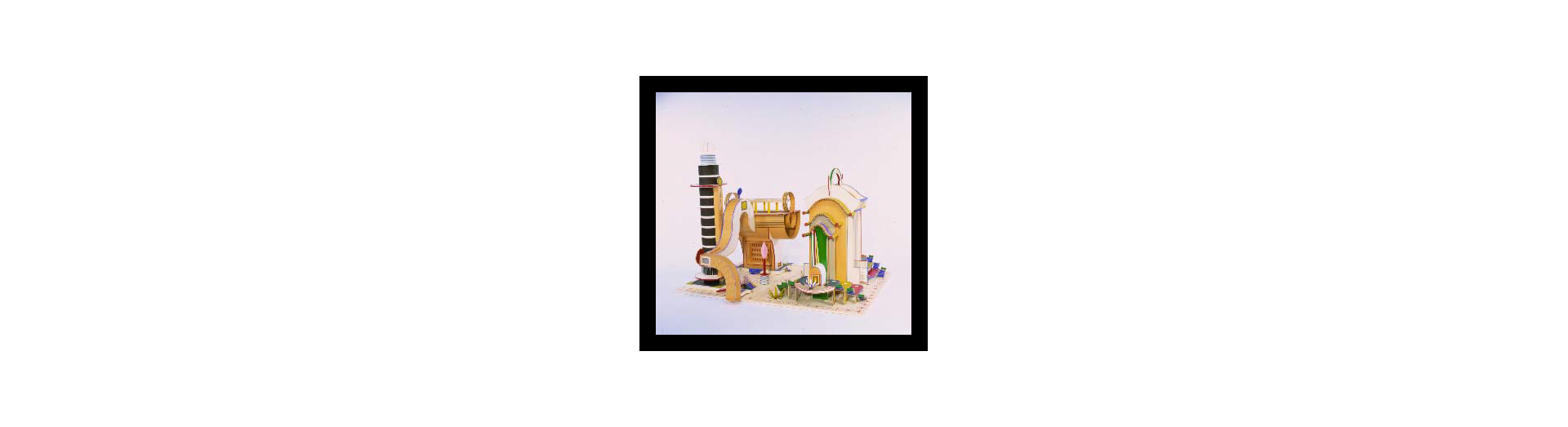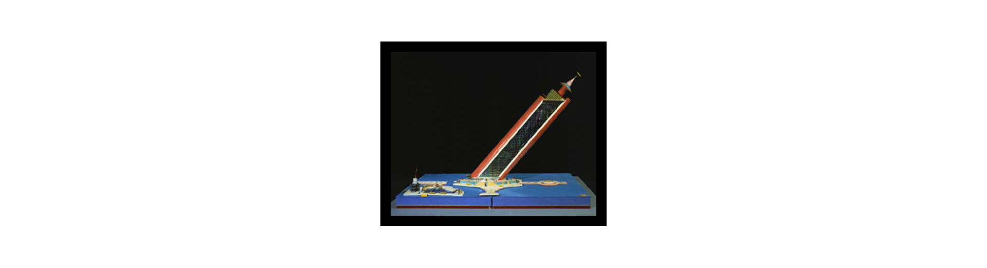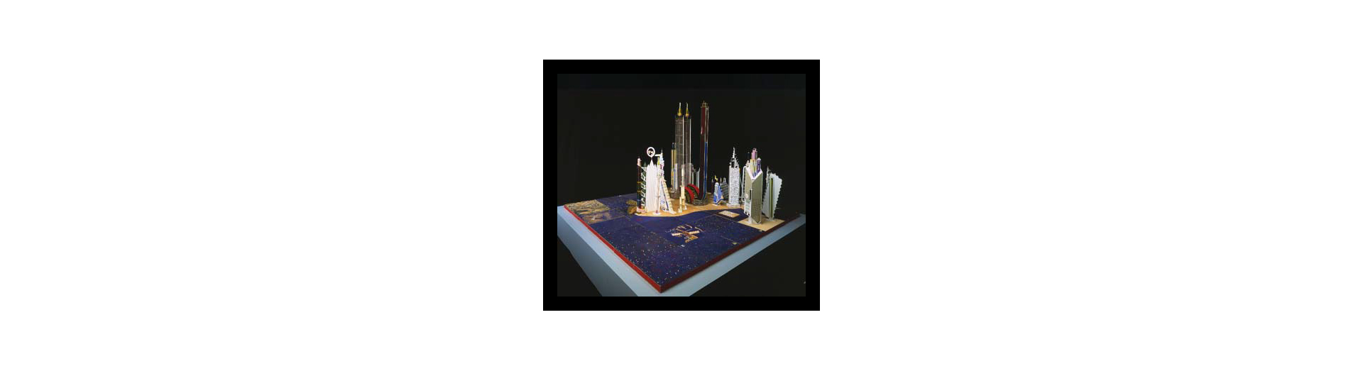 Ces "oeuvres monumentales"sont un assemblage de maquettes d'immeubles aux formes inhabituelles, de bâtiments grandioses, de complexes aux couleurs vives qui rassemblent toutes les fonctions d'une ville idéale que l'artiste rêve de voir édifier.