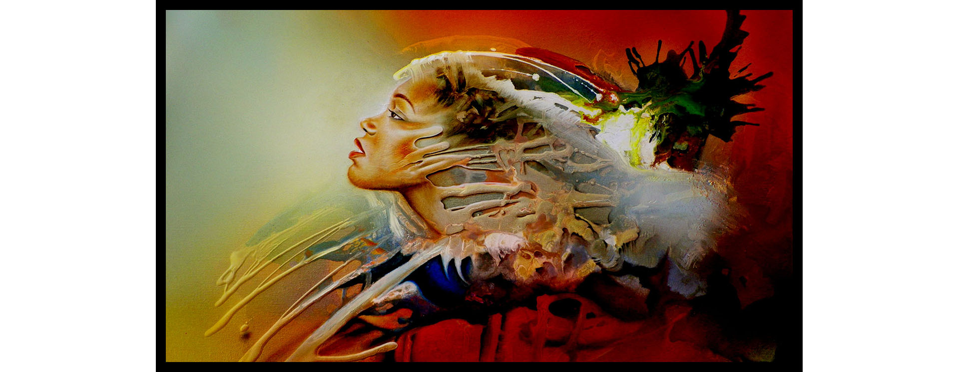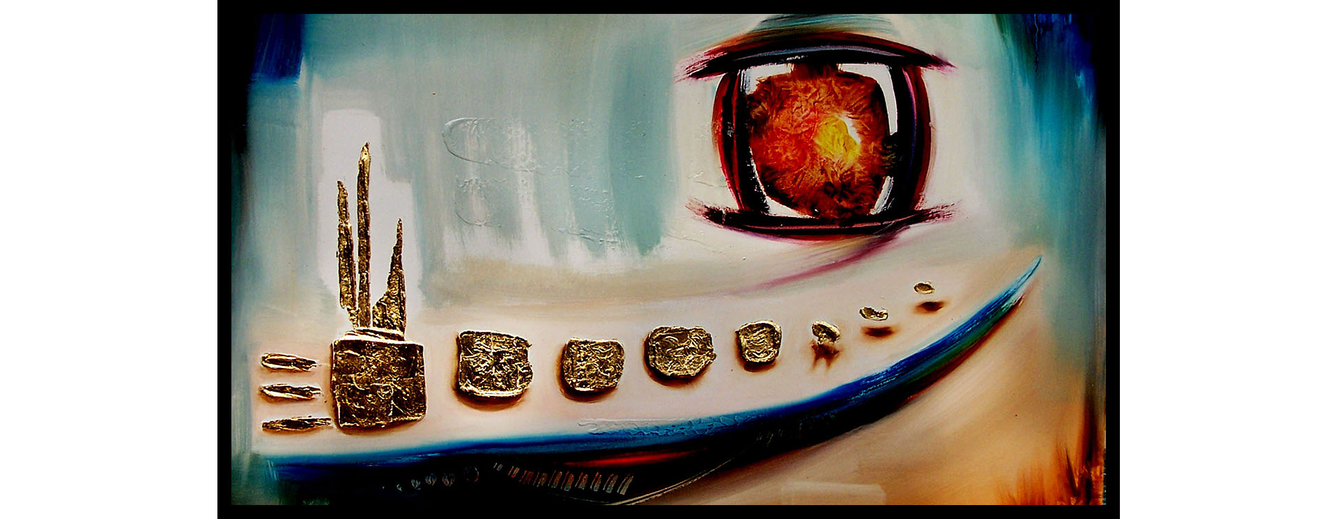 L'utilisation de divers matériaux ainsi qu'une parfaite maîtrise des techniques favorisent l'ambiance et la beauté de ses toiles.